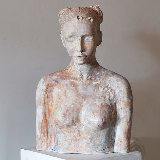 I like to think that every intimate aspect of the human being has a natural, timeless and mysterious dimension, which in turn is the narration of a story, more or less intertwined with the other aspects. Imagining the sculpture in this visionary way, I manage to space, within more or less immediate figurations and to give shape to some of the facets of my universe, which are my emotions, overbearing or impalpable, or the most difficult to face. For me, emotions, as well as temporal moments, difficulties, forms, sounds, materials, intentions, colors, are single bricks of the Universe of different matter and Time, it is a Unique and a Together. My sculptures are born in an expressive figurative language, and are private and secret actors of the same piece, the Man and his concerns, his wonders and banalities. It is through them, through emphasizing meanings and nuances of Being, to make them emerge and be recognized, that I learn to accept every meaning and nuance of what is around me, and inside.