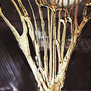 Alkali is a project of alchemical purification from the evil of humanity through the salt of the sea. The ancient wooden chest had contained grenade bombs during the Second World War. I physically plunged it into the sea depths and left there for weeks to be permeated and eaten by salt water. I then "caught" it and let it dry. At this point my plastic intervention started, in which I created organic forms, algae, molluscs, sponges, remained crystallized above the wood, clinging like pure crystals to the material coming from the war to cancel the pain, in memory of the exorcism acted from the strength of Nature to the errors of humanity. The magical power of the sea is simply an antidote to evil.